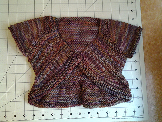 This one is also Mal Rios but in the Solis colorway. I don't have much to go, I think just the last couple garter rows and the bind off.